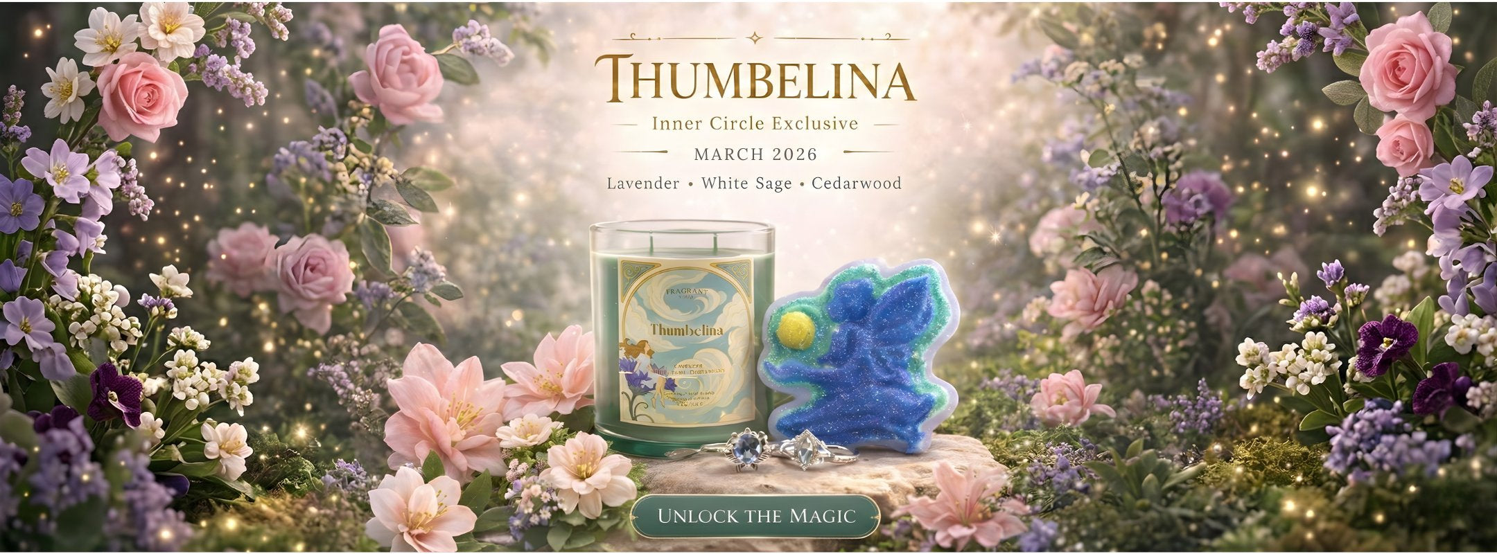 Available only to Inner Circle members, each month brings a themed Candle & Bath Bomb set—now elevated with newly designed jewelry created specifically for that collection inside every item.